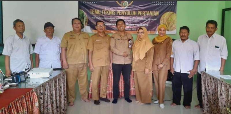 Dinas Pertanian Kabupaten Mojokerto, Provinsi Jawa Timur bekerjasama dengan Balai Besar Pelatihan Pertanian (BBPP) Ketindan menyelenggarakan kegiatan Temu Teknis Penyuluh Pertanian 25/2/2025 untuk meningkatkan kapasitas penyuluhan pertanian dengan topik permasalahan dan tantangan pertanian cerdas iklim dalam mendukung swasembada pangan.