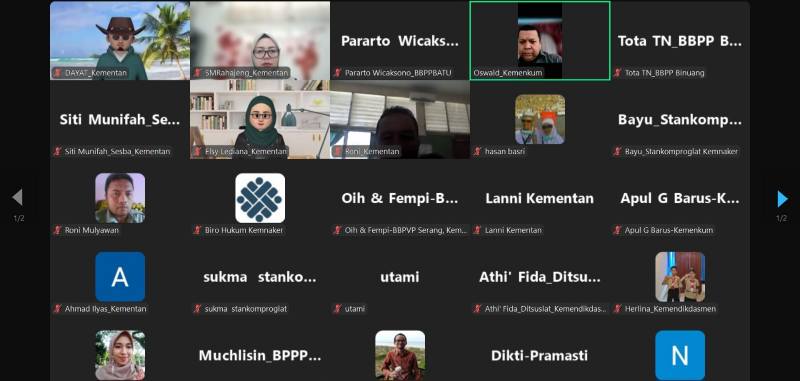 Unit Pelaksana Teknis (UPT) Badan Penyuluhan dan Pengembangan SDM Pertanian (BPPSDMP) Kementerian Pertanian mengikuti kegiatan harmonisasi Permenaker tentang Pelatihan Vokasi, yang diselenggarakan secara hybrid oleh Kemenaker pada 7/3/2025 lalu. Beberapa hal yang melatarbelakangi penyusunan Rancangan Permenaker tentang Pelatihan Vokasi, adalah sebagai tindak lanjut terhadap Perpres 68/2022 tentang Revitalisasi Pendidikan Vokasi dan Pelatihan Vokasi, serta sebagai langkah penyempurnaan Permenaker sebelumnya (8/2014) tentang Pelatihan Berbasis Kompetensi (PBK), yang sejatinya merupakan implementasi dari UU 13/2003 ketenagaakerjaan dan PP 31/2006 tentang Sislatkernas. Berdasarkan Perpres 68/2022, Kemenaker bertindak sebagai instansi pembina pelatihan vokasi, merasakan perlunya perumusan-perumusan regulasi terutama tentang pembekalan kompetensi kerja, alih kompetensi kerja, dan peningkatan kompetensi kerja, dengan melibatkan Kementerian/Lembaga teknis terkait.