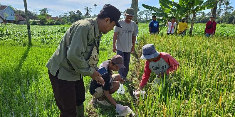 Salah satu kegiatan monitoring yang tengah digalakkan yaitu gerakan pengendalian (gerdal) hama tikus. Seperti terlihat, Senin (28/4/2025), Penyuluh Pertanian di Balai Penyuluhan Pertanian (BPP) Kec. Sumbersuko Kabupaten Lumajang melakukan monitoring kegiatan gerdal tikus yang melibatkan kolaborasi erat antara penyuluh, petugas pengendali organisme pengganggu tumbuhan (POPT) dan petani.