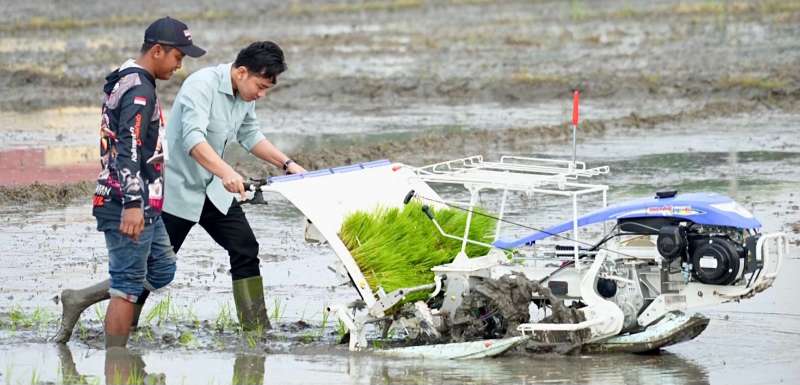 Dalam kunjungan tersebut, Wapres Gibran dan Mentan Amran melakukan penanaman padi bersama petani di lahan Kelompok Tani Nglencong Sari. Tanam padi dilakukan dengan menggunakan rice transplanter, memanfaatkan varietas unggul Inpari 32 dengan produktivitas mencapai 8–8,5 ton per hektare.