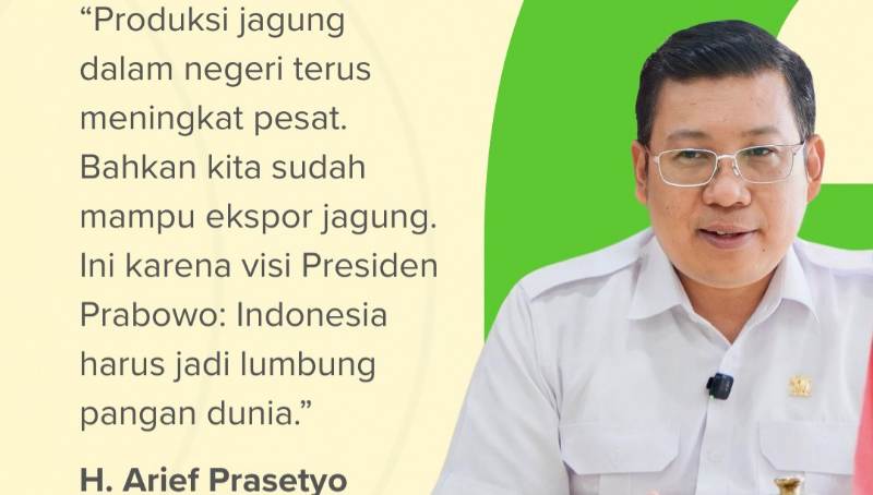 “Tentu kita patut bersyukur karena produksi jagung dalam negeri terus meningkat pesat. Bahkan kita sudah mulai dapat ekspor jagung. Ini karena visi Presiden Prabowo tidak hanya swasembada saja, tapi Indonesia harus mampu jadi lumbung pangan dunia,” ucap Arief di Jakarta pada Senin (23/6/2025).