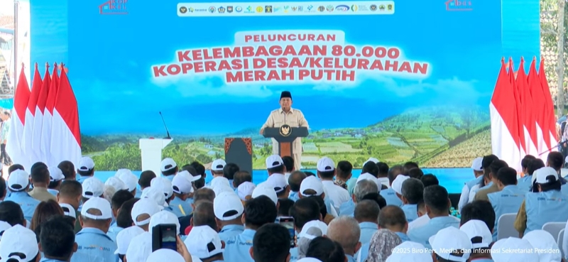 “Hari ini adalah hari yang bersejarah. Kita memulai suatu usaha besar. Koperasi adalah alat perjuangan bagi mereka yang lemah. Yang kuat membuat PT, holding, incorporated. Tapi bagi rakyat kecil, koperasi adalah kekuatan kolektif,” ujar Presiden Prabowo saat memberikan sambutan pada acara tersebut, , Senin (21/7/2025).