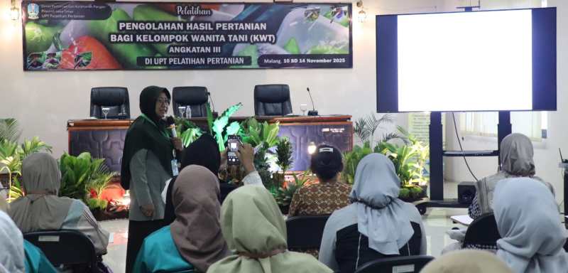 Unit Pelaksana Teknis (UPT) Pelatihan Pertanian Dinas Pertanian dan Ketahanan Pangan Provinsi Jawa Timur bekerjasama dengan Balai Besar Pelatihan Pertanian (BBPP) Ketindan menyelenggarakan kegiatan Pelatihan Pengolahan Hasil Pertanian Bagi Kelompok Wanita Tani (KWT) angkatan III pada Senin (10/11/2025).