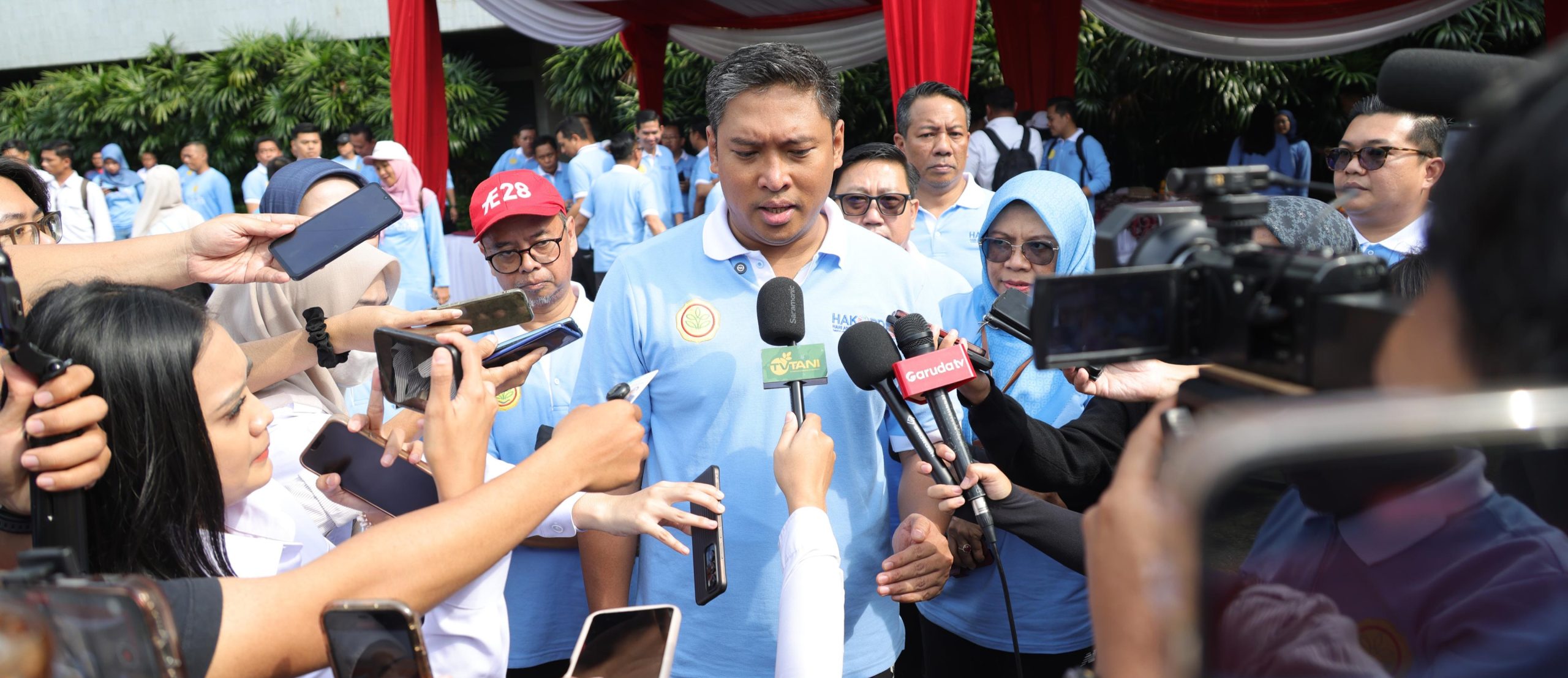 “Kita sangat berduka dengan bencana yang menimpa saudara-saudara kita di Sumatra. Tetapi yakinlah bahwa pemerintah itu gercep. Tugas kita di Kementan adalah merehabilitasi lahan-lahan pertanian dan memastikan petani tidak boleh dirugikan. Kemudian mereka mendapatkan bantuan yang semestinya, tanah mereka kemudian diolah lagi, mereka bisa tanam dan panen lagi, dan mereka dapat melanjutkan hidupnya lagi,” kata Wamentan Sudaryono usai menghadiri Peringatan Hari Antikorupsi Sedunia (Hakordia) 2025 di Kantor Pusat Kementan, Jakarta, Rabu (10/12/2025).